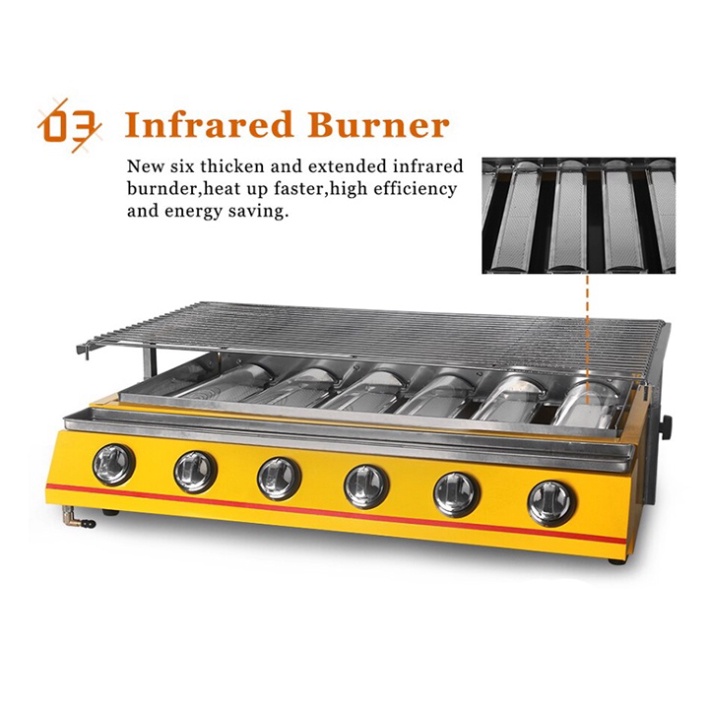 Bếp Nướng Hải Sản 6 Trụ - Bếp Gas Nướng Thịt BBQ 6 Họng Đốt Gas ET-K333