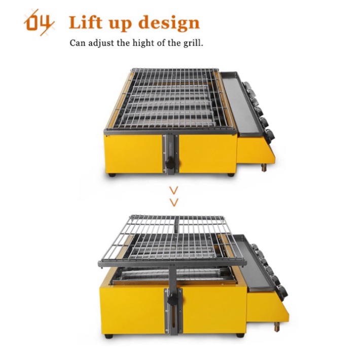 - Giá nướng có thể nâng cao thấp 1 cách dễ dàng nên có thể thuận tiện nướng nhiều món, nhiều loại mà không sợ bỏng