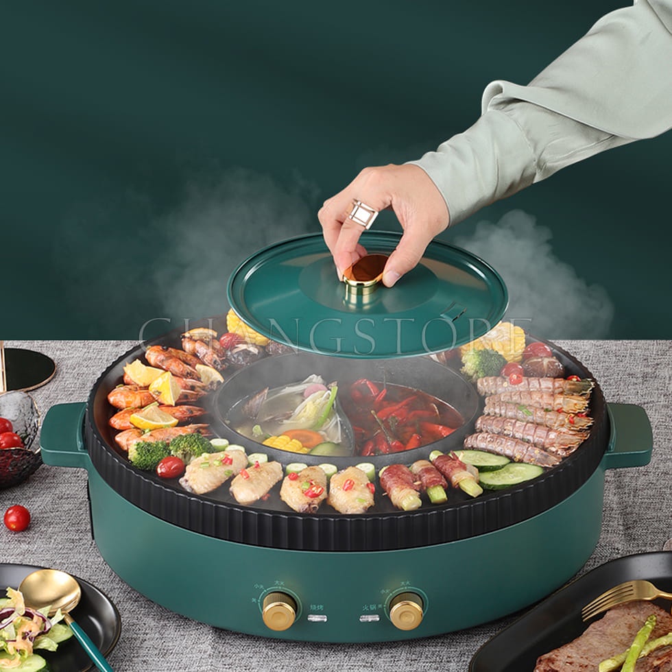 Thiết Bị Điện Gia Dụng > Đồ gia dụng nhà bếp > Nồi nấu đa năng || Bếp Nướng Không Khói Đa Năng 2 in 1, Bếp Lẩu 2 Mâm Nhiệt Độc LậpCòn hàng
