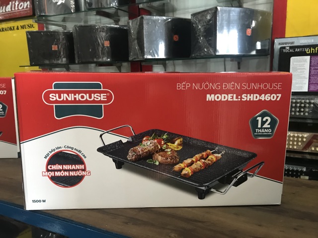 Bếp nướng sunhouse 4607 . Là dòng bếp có men chống dín tốt . Nướng không khói . Và bên dưới là inox sáng cao cấp . Bếp có thiết kế miệng rót mỡ thừa . Tự ngắt khi qúa tải nhiệt . Dể dàng vệ sinhGiá XDAG