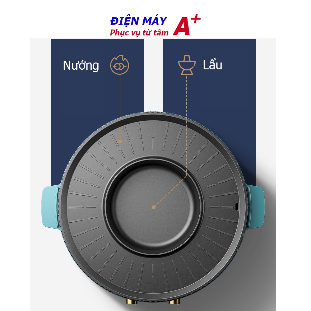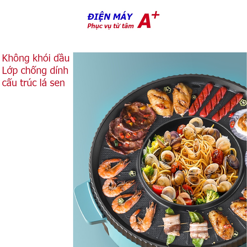 Bếp nướng lẩu 2 in 1 công nghệ nhiệt 4D, chống dính kiểu lá sen, không khói dầu