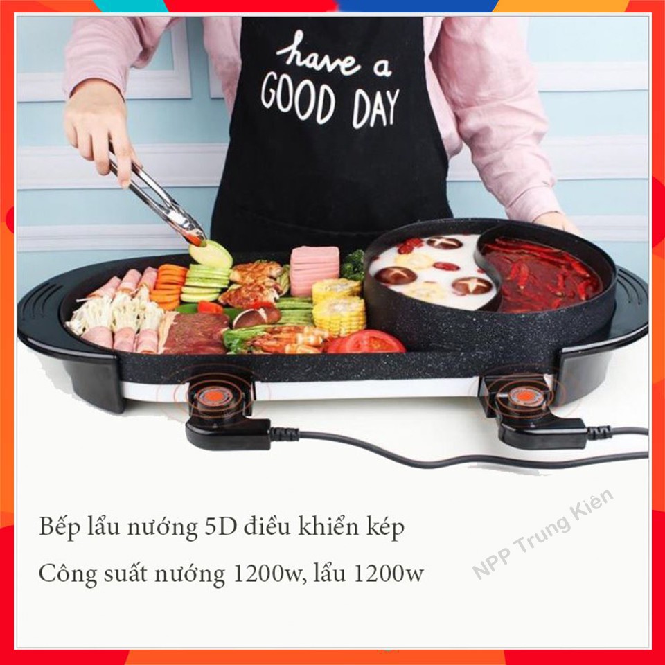 Bếp Nướng Lẩu 2 Ngăn 🥘 ĐA NĂNG ⚡ Nồi Lẩu Nướng điện 2 trong 1 tiết kiệm điện năng 🥘 Siêu Chống Dính - Trung Kiên Shop