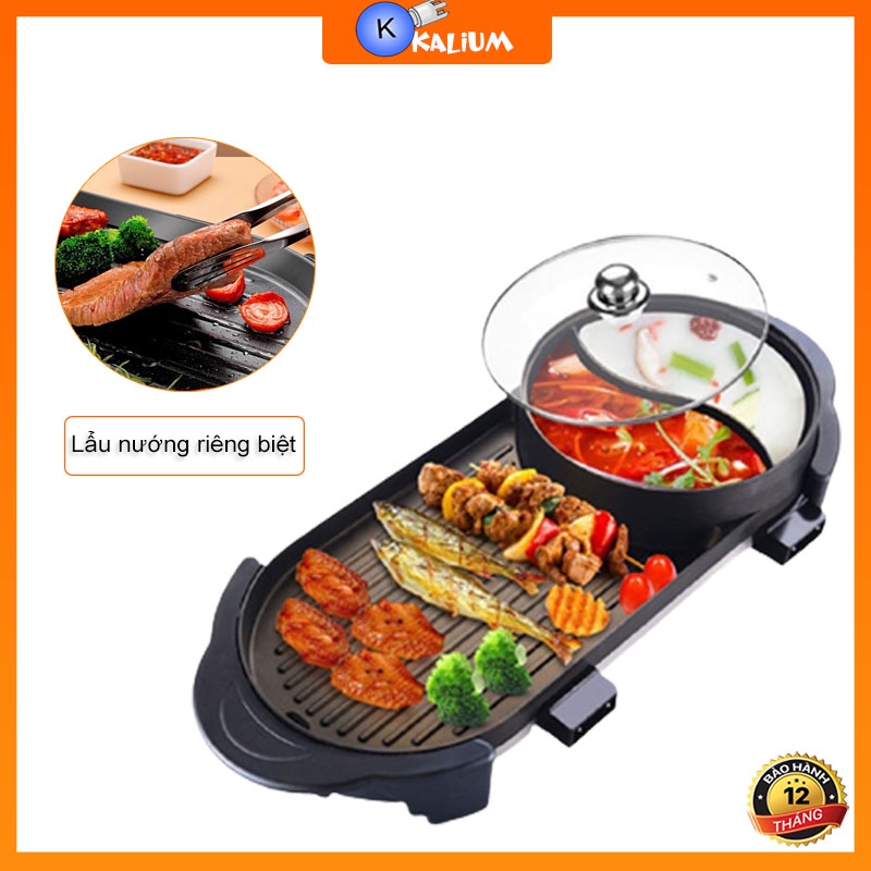 Bếp Nướng Lẩu 2 Ngăn ĐA NĂNG - Nồi Lẩu Nướng điện 2 trong 1 phủ men chống dính, có thế điều chỉnh nhiệt độ 2 bên độc lập