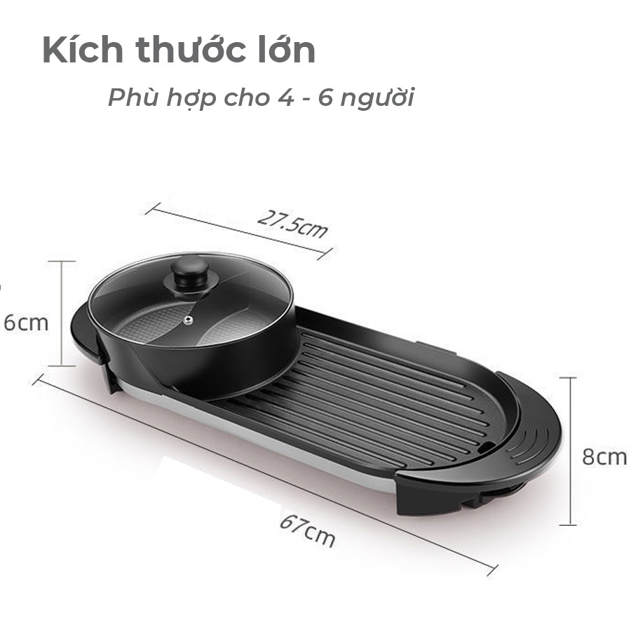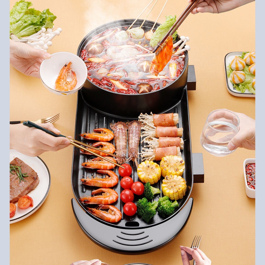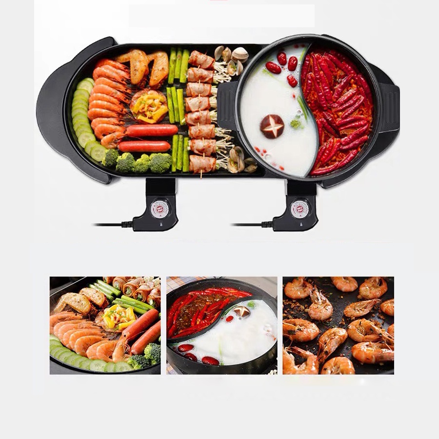 Bếp Nướng Lẩu 2 Ngăn Đa Năng LISHAN - Nồi Lẩu Nướng điện 2 trong 1 phủ men chống dính