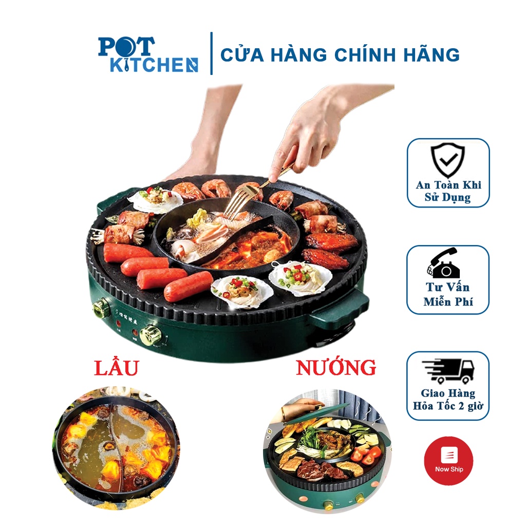 Bếp nướng lẩu đa năng 2 in 1 X2000, nồi lẩu nướng điện không khói có 2 mâm nhiệt công suất 1500W POT KITCHEN