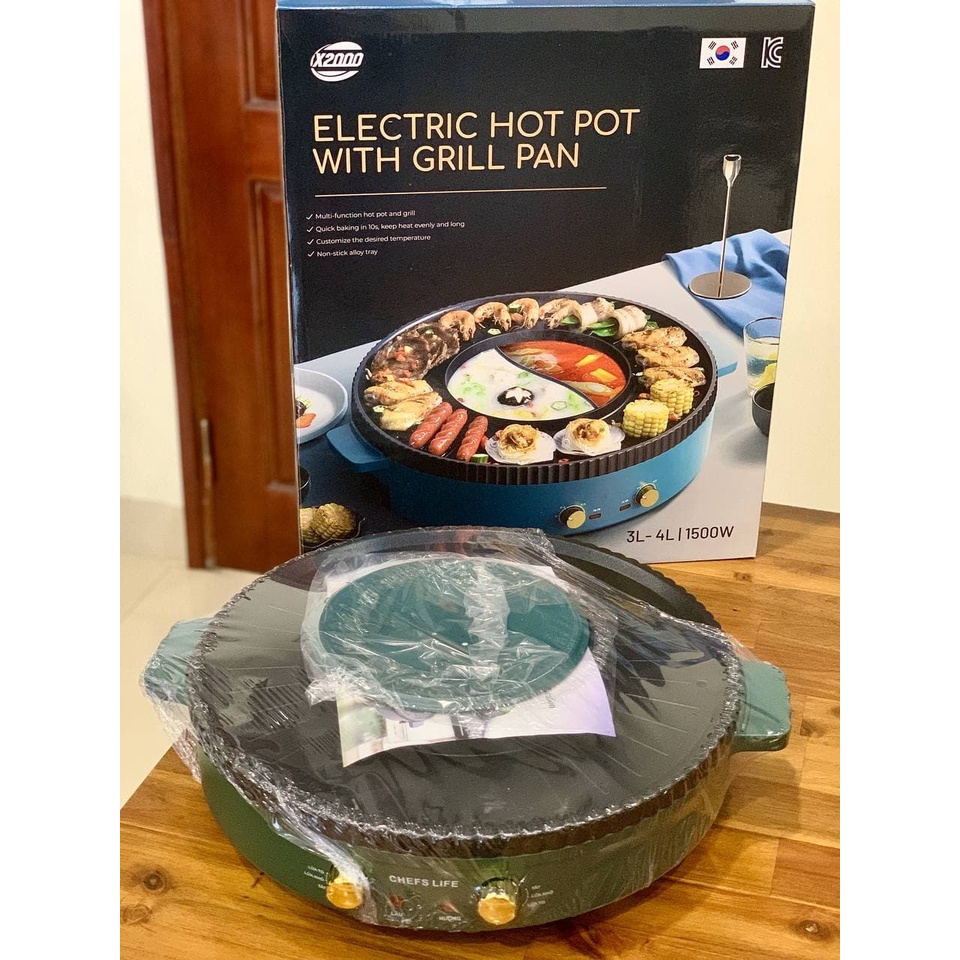 Thiết Bị Điện Gia Dụng > Đồ gia dụng nhà bếp > Nồi nấu đa năng || Bếp nướng lẩu đa năng 2 in 1 X2000, nồi lẩu nướng điện không khói có 2 mâm nhiệt công suất 1500W POT KITCHENCòn hàng