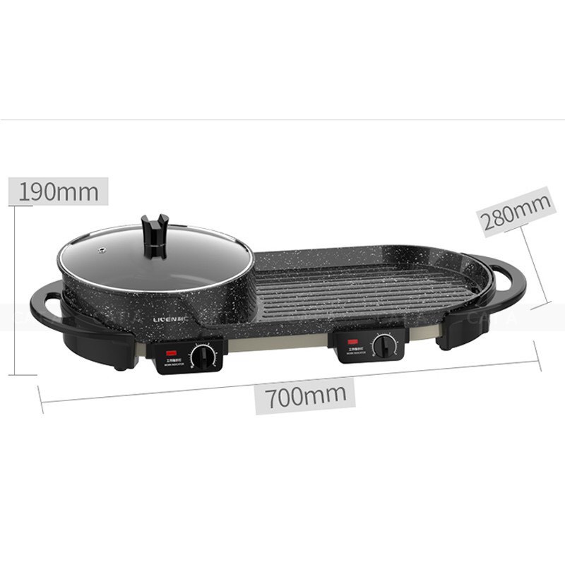 - Tiết kiệm điện với 2 núm điều chỉnh nhiệt độ cho nồi lẩu và bếp nướng