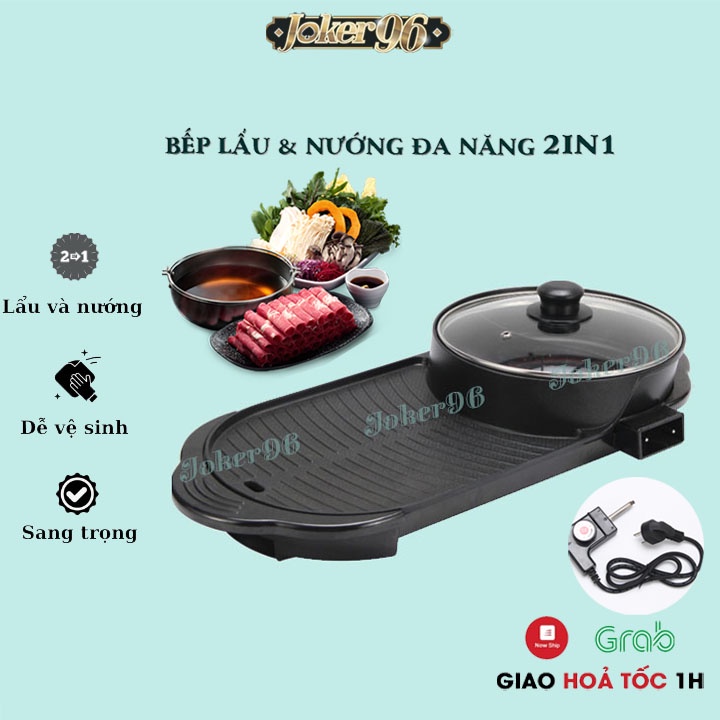 Bếp Nướng Lẩu Đa Năng Không Khói 2in1 JK96, Nồi Lẩu Nướng BBQ Kiểu Dáng Hàn Quốc Bảo Hành 1 Đổi 1