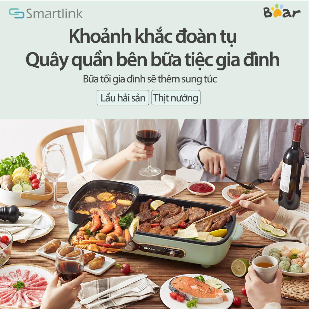 Giới thiệu [Mã ELMALL10 giảm 10% đơn 500K] Bếp Nướng Lẩu Điện Đa Năng 2in1 Bear DKL-C15G1 3L - Chính Hãng - BH 18 Tháng