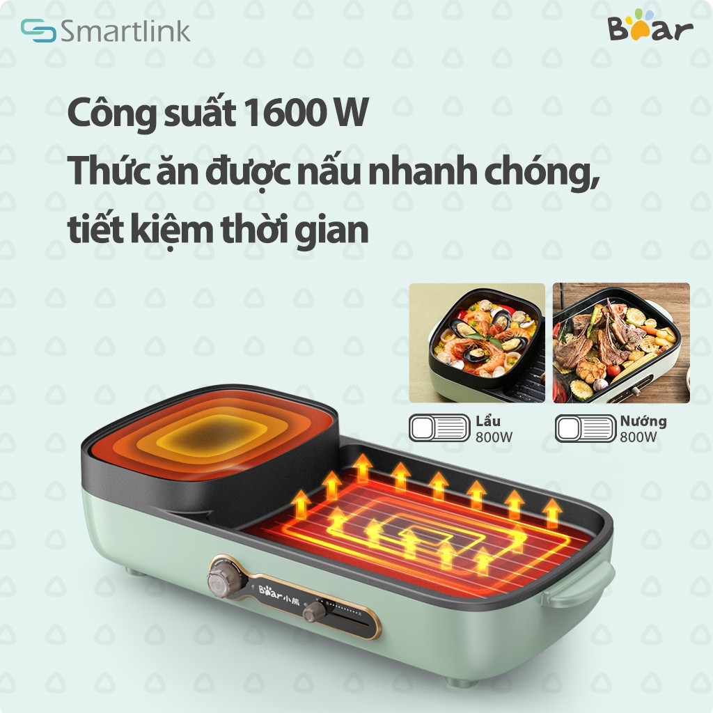 Công suất: 1600W (800W cho nồi lẩu + 800W cho bàn nướng)