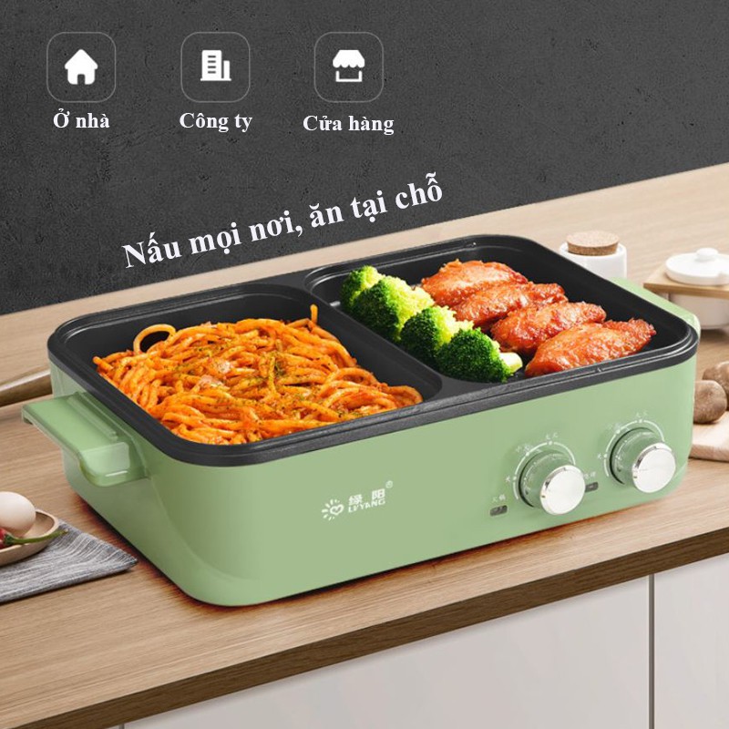 Bếp Nướng Lẩu Điện LvYang Không Khói Chống Dính 2 Trong 1 Cao Cấp - Nồi Lẩu Nướng Đa Năng Chính Hãng Vừa Lẩu Vừa Nướng