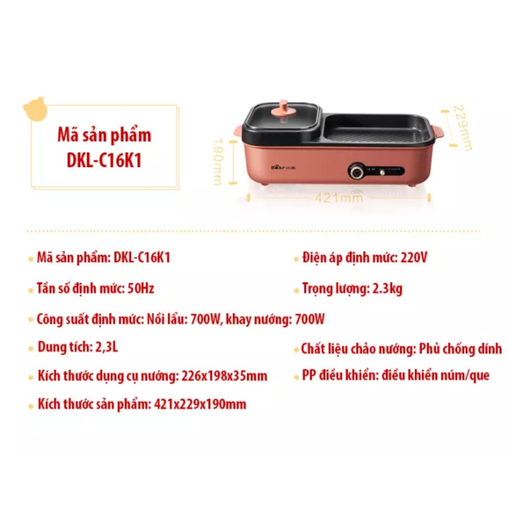 Giới thiệu [Mã ELHADEV giảm 4% đơn 300K] Bếp, nướng, lẩu nướng BEAR đa năng DKL-C15G (Hàng nội địa)