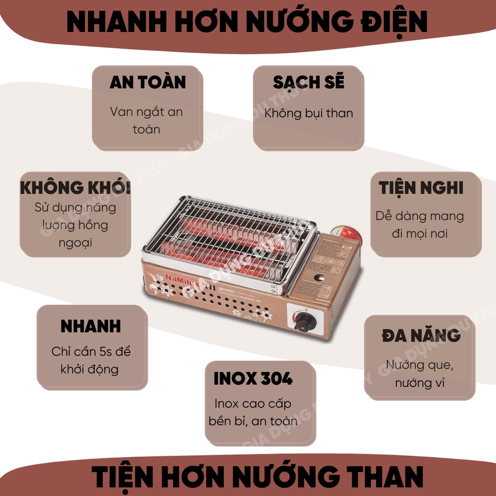 • Bếp nướng mini dã ngoại, bếp nướng gas không khói sở hữu các tính năng ưu việt chỉ có ở NaMilux: