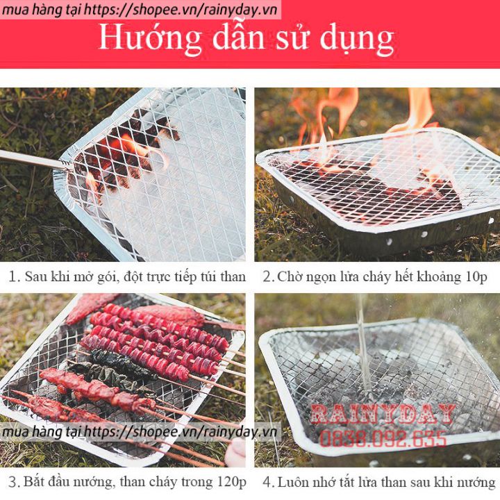 Bếp nướng than BBQ dùng 1 lần, vỉ nướng thịt đi du lịch dã ngoại picnic ngoài trời