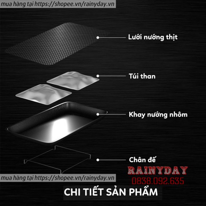 - Bộ sản phẩm bao gồm: 1 khay than , 01 giá để than, 01 vỉ nướng, than bột ngô.