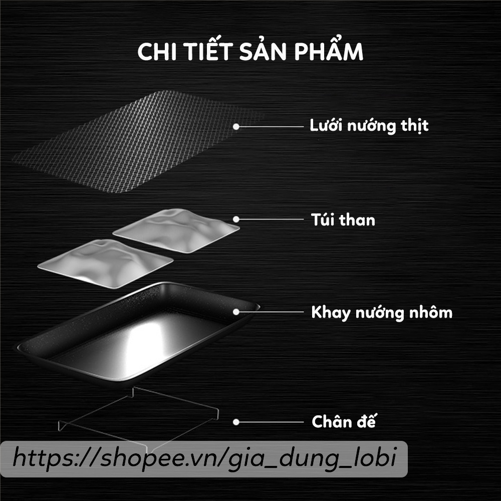 - Bộ sản phẩm bao gồm: 1 khay than , 01 giá để than, 01 vỉ nướng, than bột ngô.