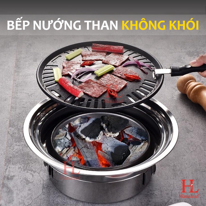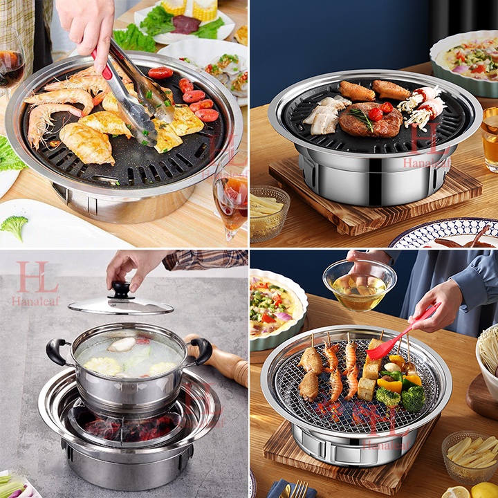 ✅ Thiết kế độc đáo của bếp nướng than hoa không khói là có thể nướng trực tiếp trên than hoa hoặc nướng qua tấm gang chống dính