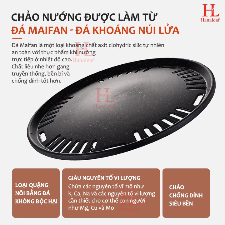 + Tấm nướng được làm từ Đá Maifan nhẹ hơn, bền hơn và chống dính tốt hơn