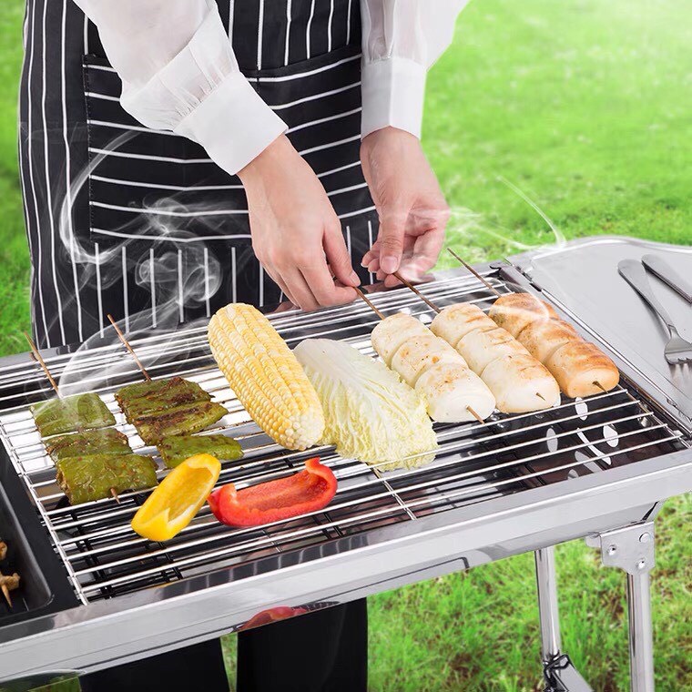 Bếp nướng BBQ ngoài trời dã ngoại nướng than hoa inox có thể gấp gọn chân cao xếp kèm phụ kiệnThông tin sản phẩm