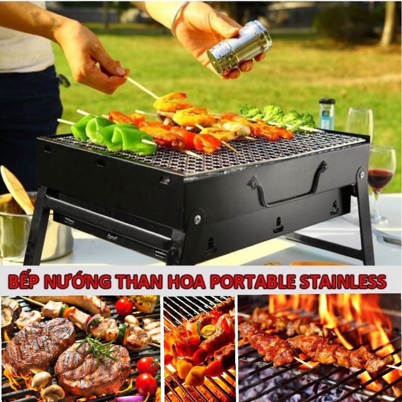 Bếp Nướng Than Hoa Dài, Vuông Lò Nướng BBQ Cao Cấp Ngoài Trời Tiện Dụng Khi Mang Theo