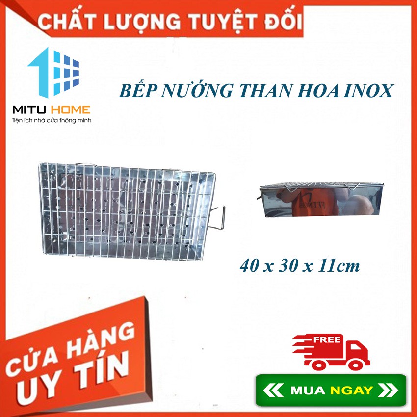 BẾP NƯỚNG THAN HOA INOX - VỈ 40 x 30 x 11cm - MITUHOME - CHUYÊN DÙNG NƯỚNG THỊT NGOÀI TRỜIBẾP NƯỚNG THAN HOA INOX