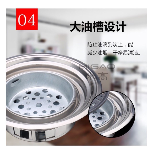 Thiết kế độc đáo của bếp nướng than hoa không khói là có thể nướng trực tiếp trên than hoa hoặc nướng qua tấm gang chống dính,