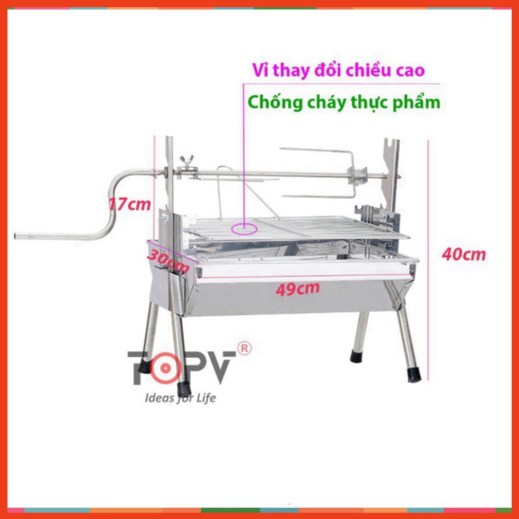 2. Đặc biệt với thiết kế sáng tạo Bếp nướng than hoa đa năng TopV DNS cho phép thay đổi độ cao của vỉ và xiên quay so với mặt than nhằm tối ưu nhiệt độ nướng. Giúp thức ăn chín đều mà không sợ cháy thực phẩm