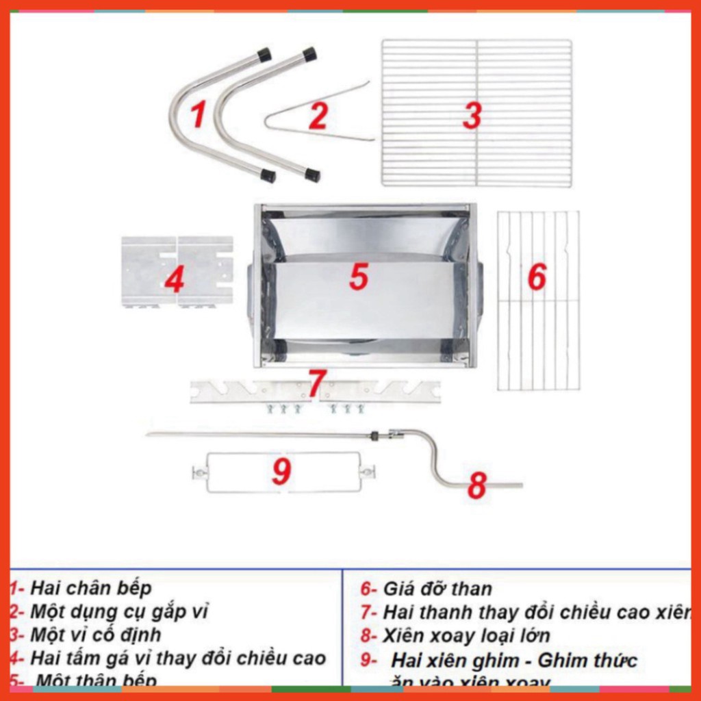 6. Toàn bộ bếp (thân bếp, vỉ nướng, xiên nướng…) đều được làm bằng chất liệu INOX chuyên dụng chịu nhiệt cao cấp, chống gỉ, an toàn cho sức khỏe, bền bỉ với thời gian, kiểu dáng đẹp, gọn gàng và sang trọng.