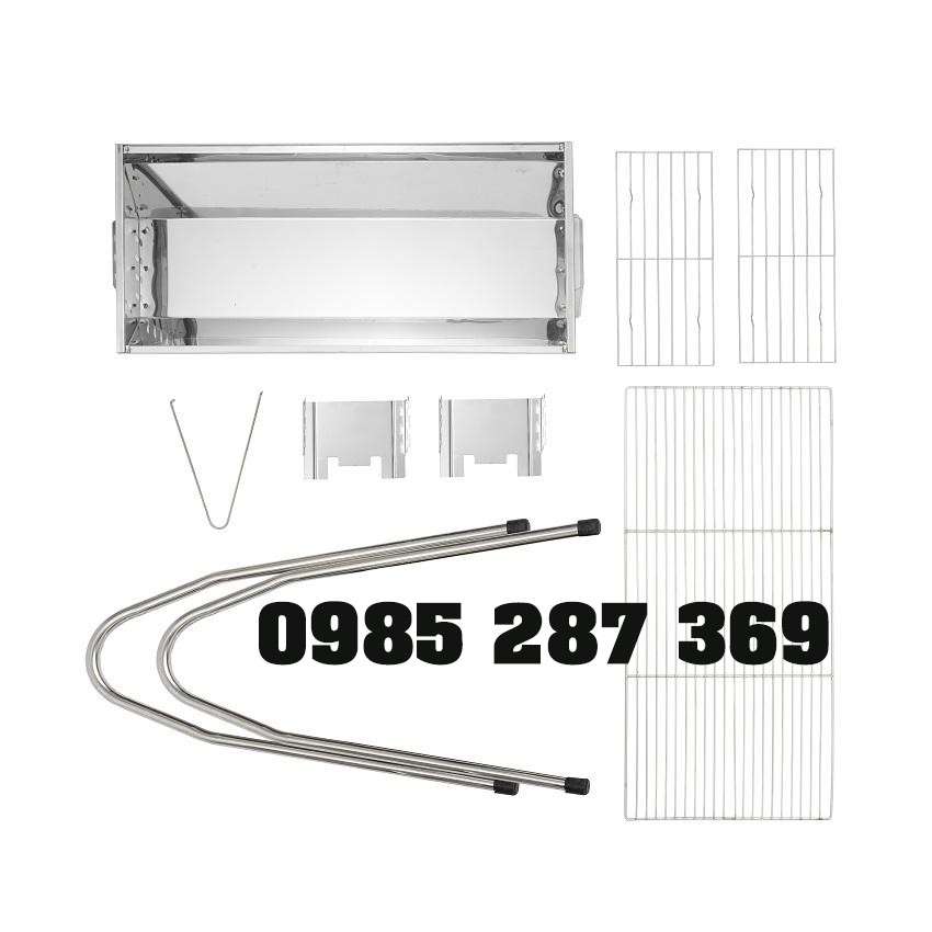 - Sản phẩm bao gồm: 1 thân bếp,2 vỉ than, 1 vỉ nướng. 2 chân đứng, 1 gắp than,2 tấm thay đổi chiều cao vỉ