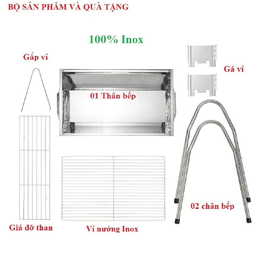 ☘ 01 bếp nướng than hoa Inox (Dài*Rộng*Cao = 49x30x57 cm)