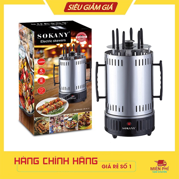 Bếp nướng thịt bbq xiên que quay 360 độ dùng điện 1200W cao cấp SOKANY