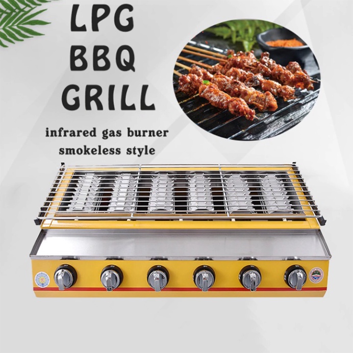 Bếp nướng BBQ 6 họng là thiết bị chuyên dùng nướng hải sản, nướng thịt, nướng cá trong nhà hàng lẩu nướng, tiệc buffet. Món nướng là món ăn vô cùng hấp dẫn với các loại gia vị khác nhau sẽ cho chúng ta thưởng thức các món nướng khác nhauTHÔNG SỐ KỸ THUẬT: