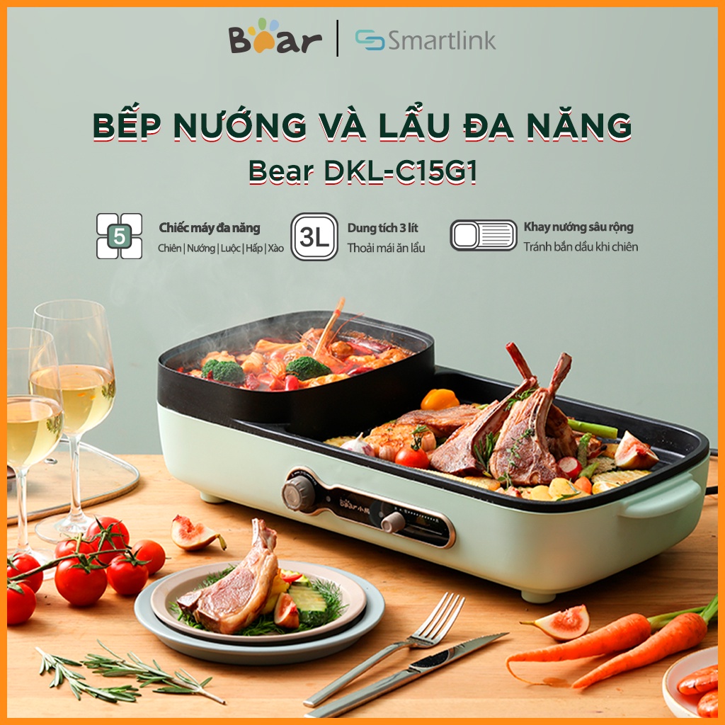 Bếp Nướng Và Lẩu Đa Năng Nguyên Khối Bear DKL-C15G1 - Bảo hành 18 Tháng