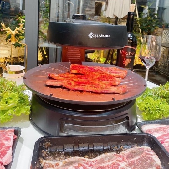 BẾP NƯỚNG XOAY CAO CẤP CHEF&CHEF CR-04K BBQ KHÔNG KHÓI HÀN QUỐC