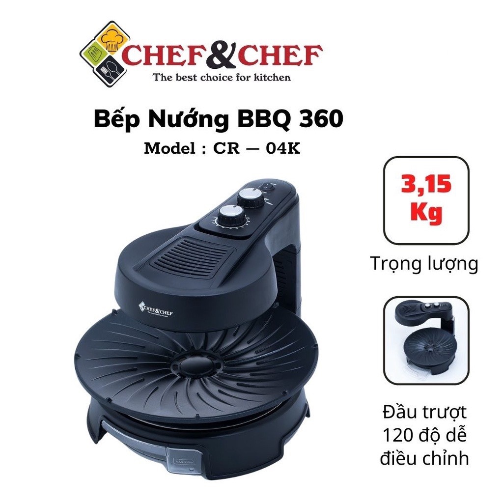 Nhà cửa & Đời sống > Dụng cụ nhà bếp > Lò nướng & phụ kiện || BẾP NƯỚNG XOAY CAO CẤP CHEF&CHEF CR-04K BBQ KHÔNG KHÓI HÀN QUỐCCòn hàng