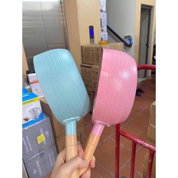 - Chảo sâu lòng màu xanh, màu hồng cực kỳ dễ thương