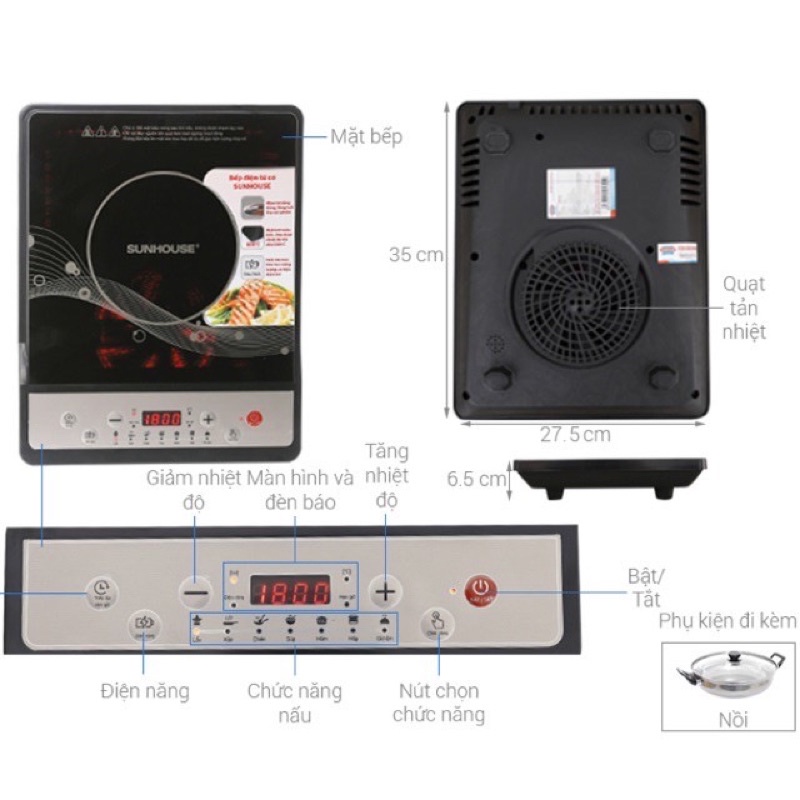 Giới thiệu Bếp Từ Sunhouse SHD6149 - Tặng Kèm Nổi Lẩu - Hàng Chính Hãng (Bảo Hành 12 Tháng)