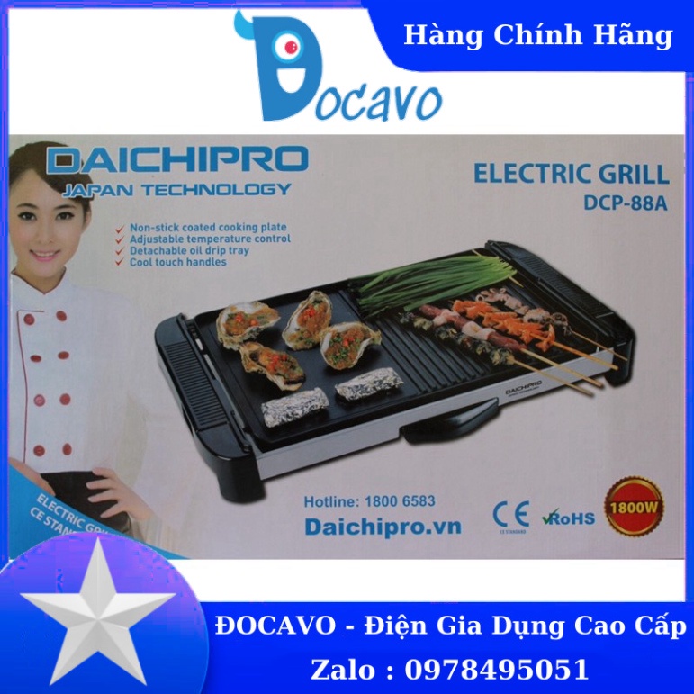 Thiết Bị Điện Gia Dụng > Đồ gia dụng nhà bếp > Lò nướng || Bếp Vỉ Nướng Điện Cỡ Lớn Daichipro DCP-88A (1800W) - Chính Hãng Đocavo xincosmeticsCòn hàng