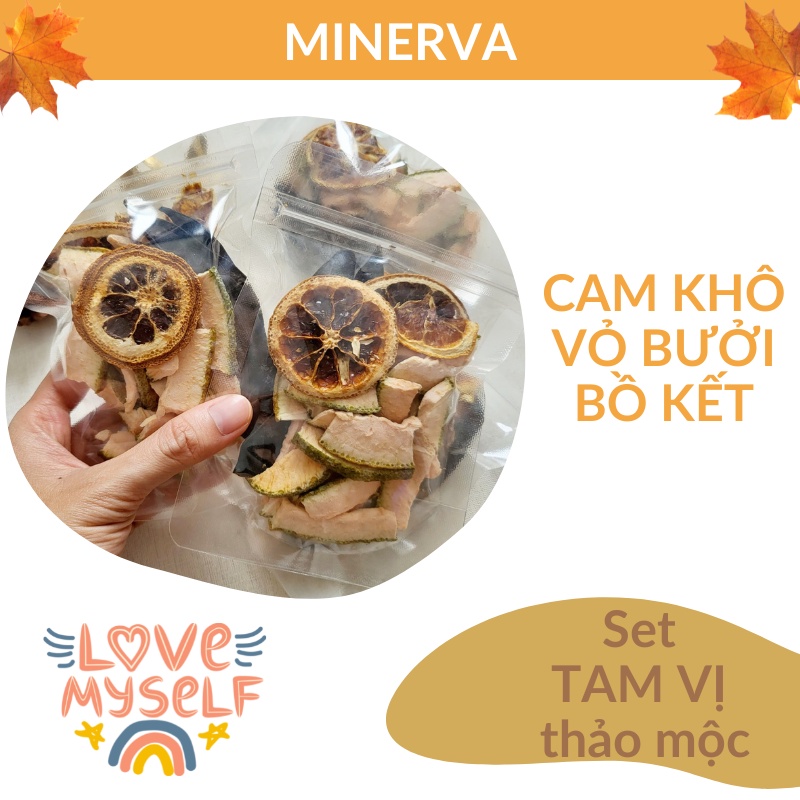 - Gói thảo mộc gồm 3 loại, cân nặng 35 gram. Bao gồm cam khô, vỏ bưởi, bồ kết.
