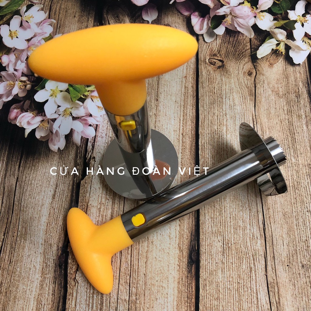 Dụng Cụ Lấy Ruột Thơm Tiện LợiVới dụng cụ gọt thơm tiện dụng này: trước tiên bạn phải cắt phần đầu quả thơm, rồi đặt dụng cụ vào giữa quả thơm và đẩy xuống. Chỉ sau 30 giây bạn sẽ có ngay những miếng thơm thật hấp dẫn và đẹp mắt. Thật tiện lợi và nhanh chóng phải không nào, giờ đây cắt gọt thơm không còn quá vất vả với chị em nôi trợ nữa.
