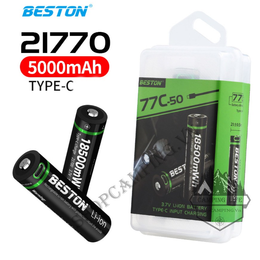 Giới thiệu Beston Pin 21700 lithium sạc cổng sạc Type-c 5000mAh 77C-50