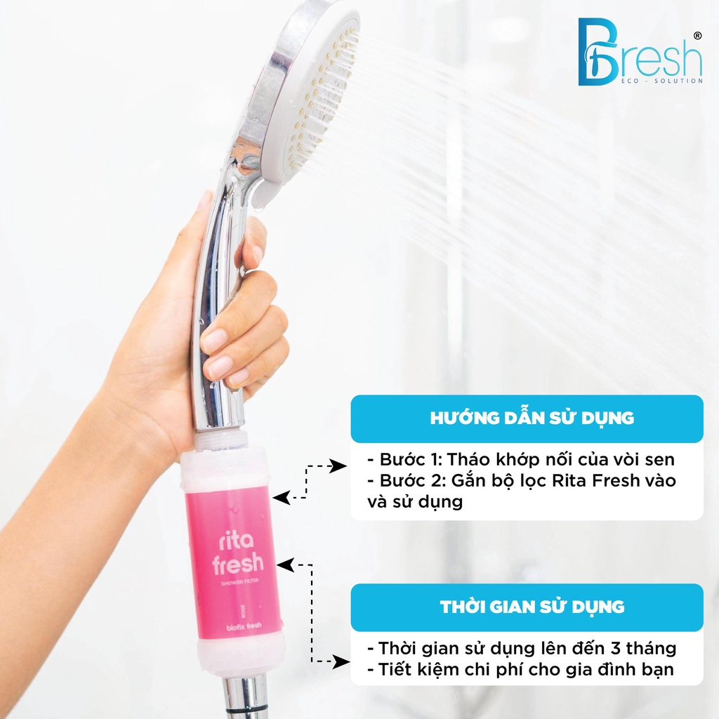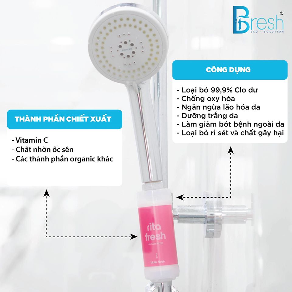 Giới thiệu BFRESH Bộ lọc nước vòi sen tắm dưỡng da vitamin Rita Fresh hương Hoa Hồng