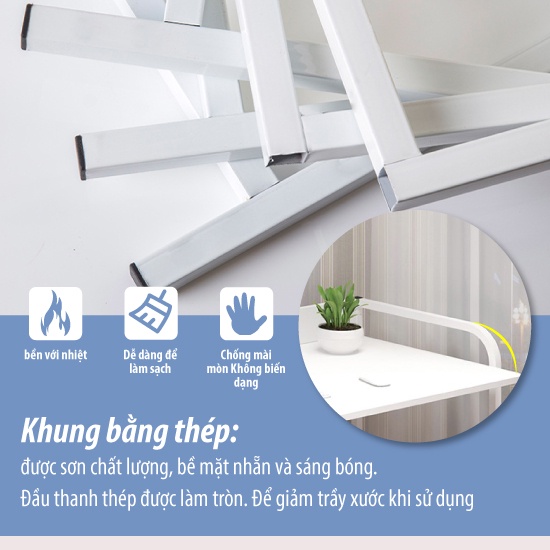 🔥 Chất liệu: mặt bàn gỗ công nghiệp MDF được phủ Melamin chống thấm, khung thép sơn tĩnh điện chắc chắn