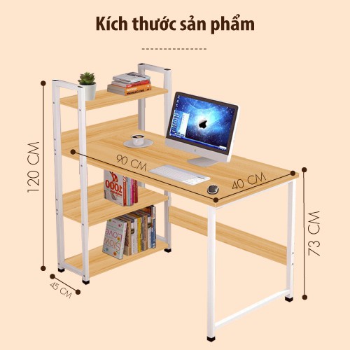 Nhà cửa & Đời sống > Nội thất > Bàn || BG Bàn làm việc học tập kèm kệ sách đa năng model T9010 khung trắng (D90XR40XC120CM)Còn hàng