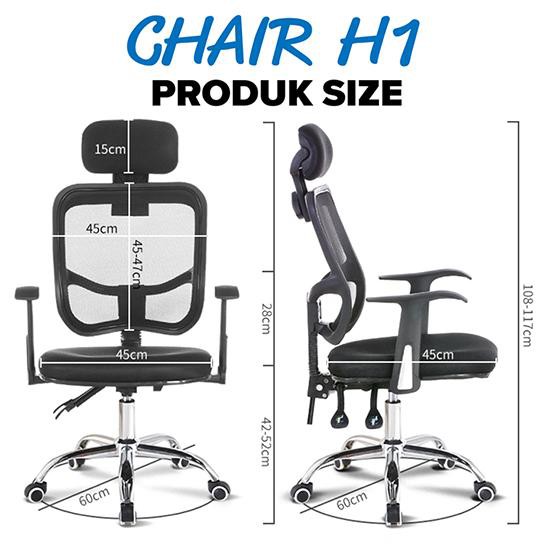 Kích thước ghế : Lưng 66-76cm , Nệm ghế: 47x48cm, Tay ghế : 20cm, Độ cao 43-51cm