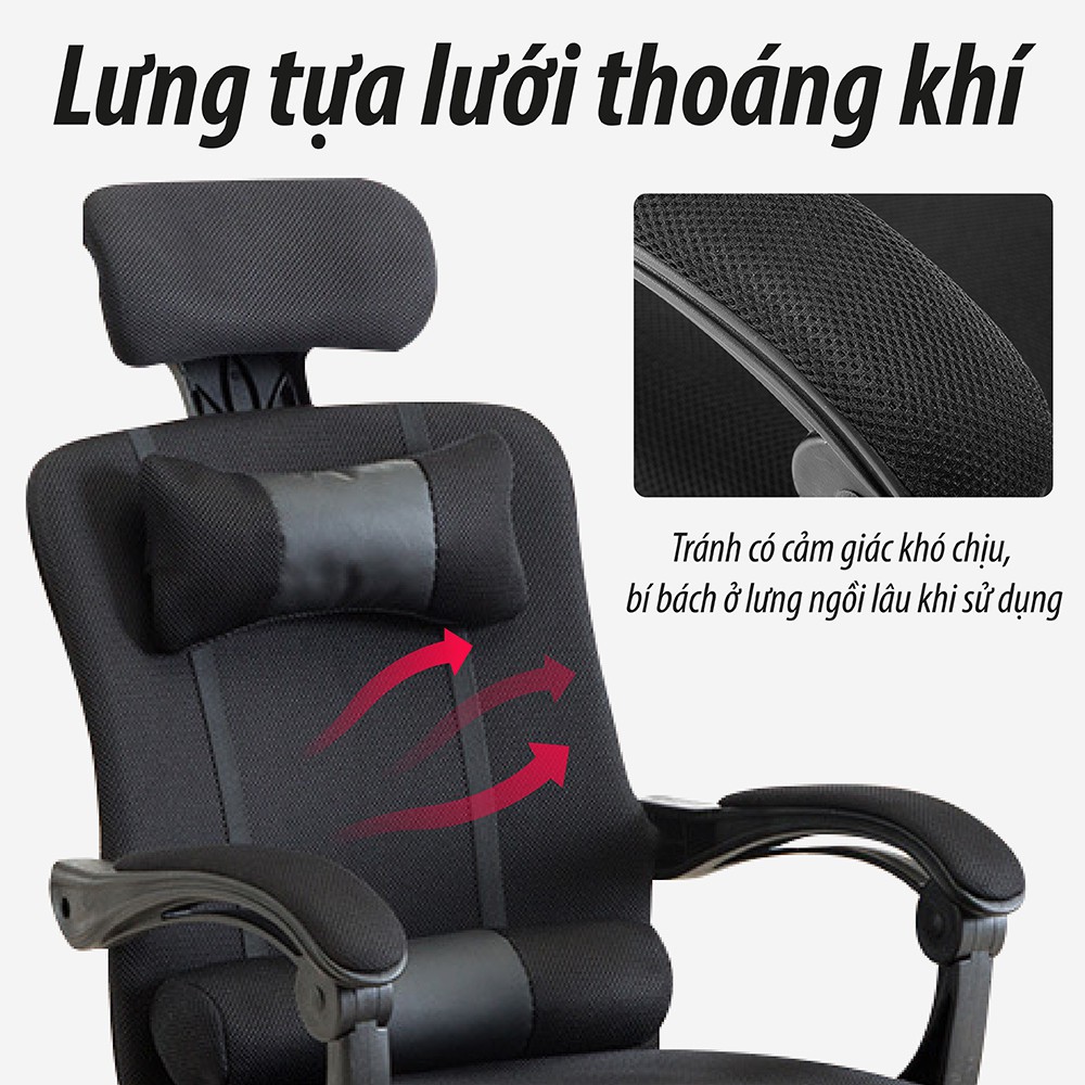 Ghế xoay văn phòng làm việc,học tập BG B300 lưng kép, có gối tựa , gác chân êm ái thoải mái