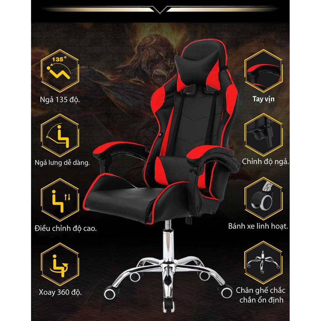 Nhà cửa & Đời sống > Nội thất > Ghế, ghế dài, ghế đẩu || BG Ghế game văn phòng cao cấp chân xoay ngã 135 độ Thái Lan model E0201N red/black 2021Còn hàng