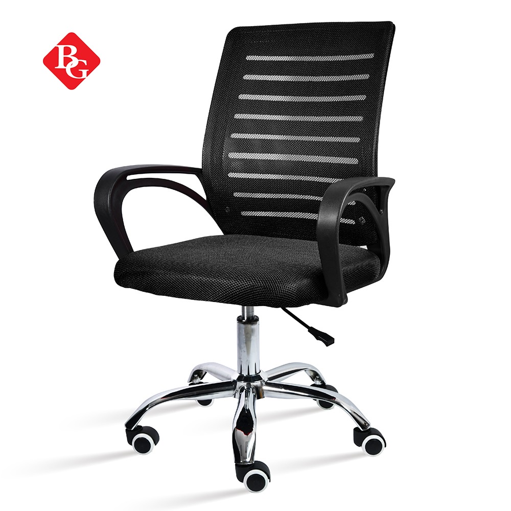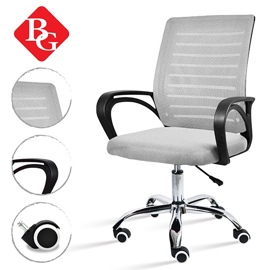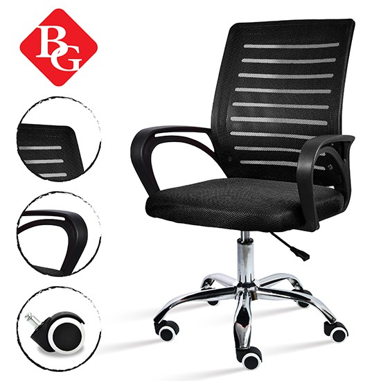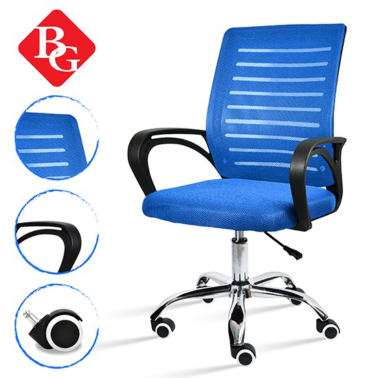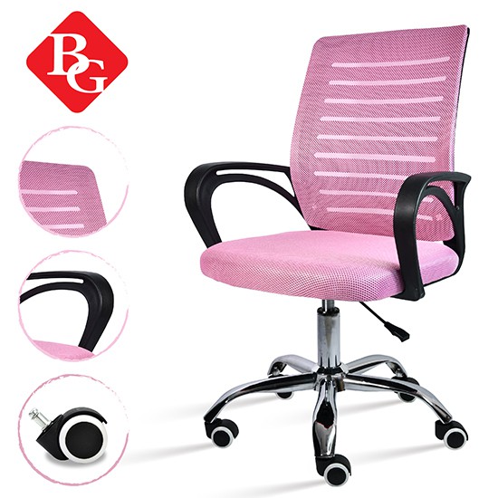 + Tựa lưng trung bọc vải lưới thoáng mát, kết hợp thiết kế kiểu dáng uốn cong dạng hình chữ S có tác dụng nâng đỡ cột sống, bảo vệ vùng thắc lưng và tạo dáng ngồi thẳng.