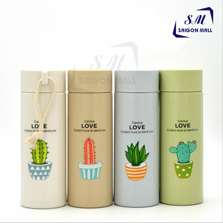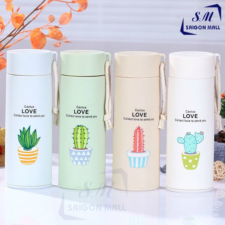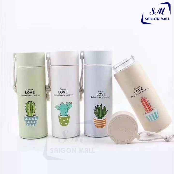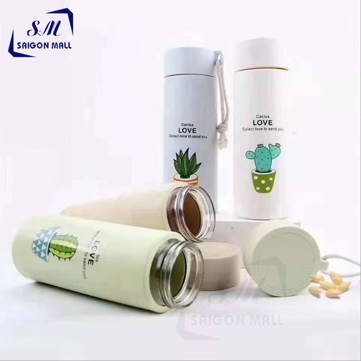 Nhà cửa & Đời sống > Bộ đồ bàn ăn > Bình nước & phụ kiện || BGN04-Bình giữ nhiệt lõi thủy tinh võ bọc nhựa in hình xương rồng 450ml đặc biệt có dây xách rất tiện lợiCòn hàng