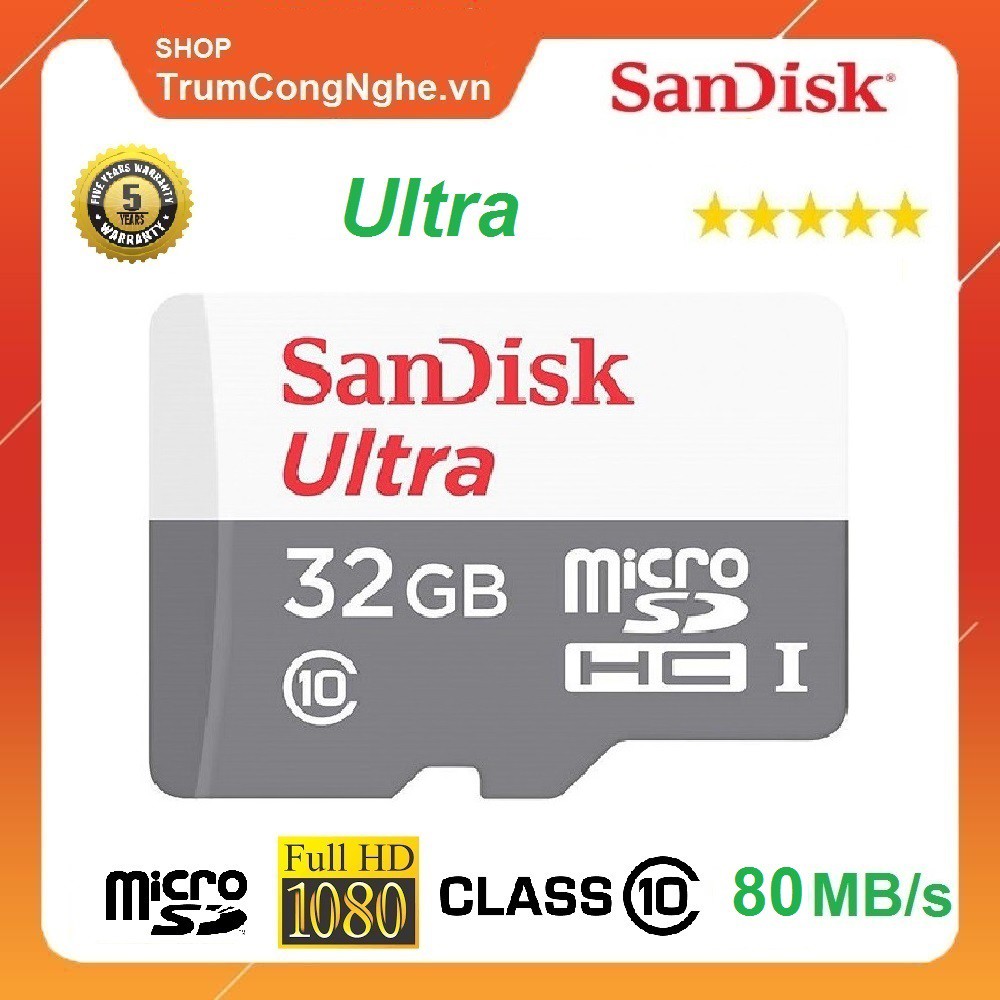 Giới thiệu [BH 05 năm] Thẻ nhớ MicroSD Sandisk Ultra 80mb/s 32GB Class10 giá rẻ